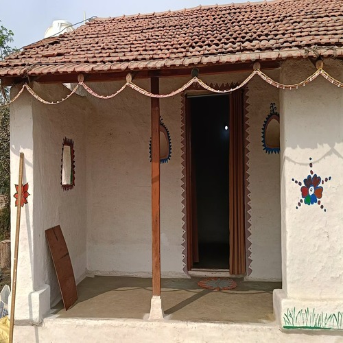 Jayanshi Homestay- lovingly built by Jhalkan Singh Ahirvar and his wife using natural mud and traditional techniques. Adorned with handcrafted wall paintings, this eco-friendly stay offers a warm and authentic rural experience. Surrounded by mango, guava, jackfruit, and drumstick trees, the homestay sits beside a flourishing organic farm known for sustainable practices. Guests can explore seasonal vegetable patches, and handpick chemical lfree grown vegetables for a traditional meal prepared by the couple. The site is often visited by scholars and students keen to learn about regenerative agriculture. Just a short drive from UNESCO World Heritage Site Sanchi and the Tropic of Cancer, Jayanshi is a perfect blend of culture, nature, and learning.